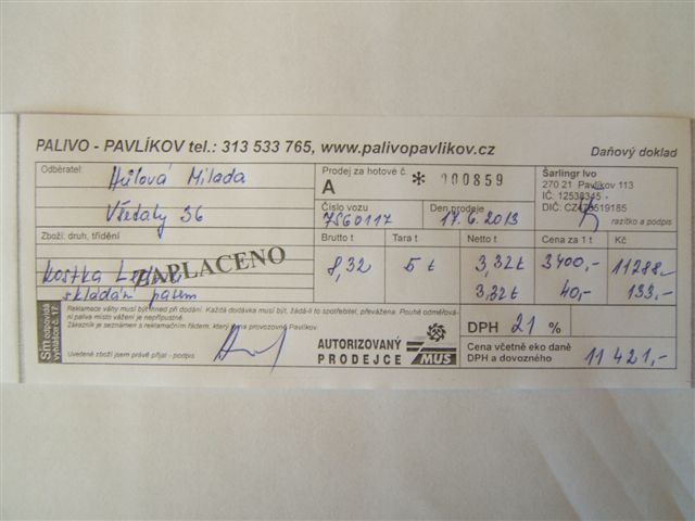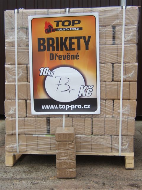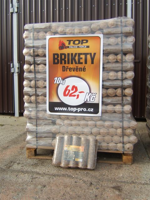 | Dřevěná briketa - balení 10kg. | 98 Kč/bal |
